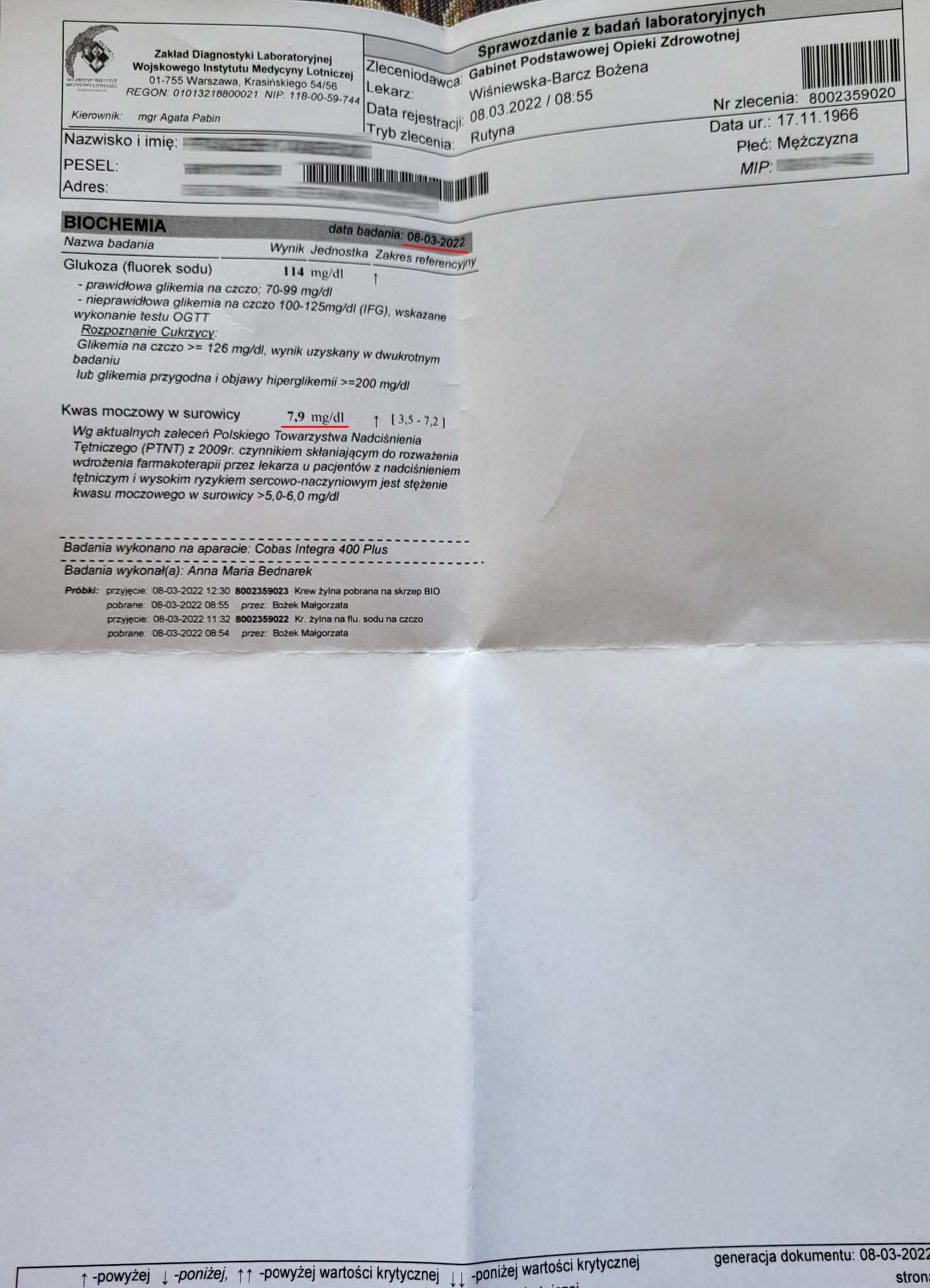 Po kolejnych dwóch miesiącach kobieta ponownie wykonała badania. Widoczne są: spadek TSH, obniżenie stanu zapalnego jak i spadek markeru wątrobowego GGTP.