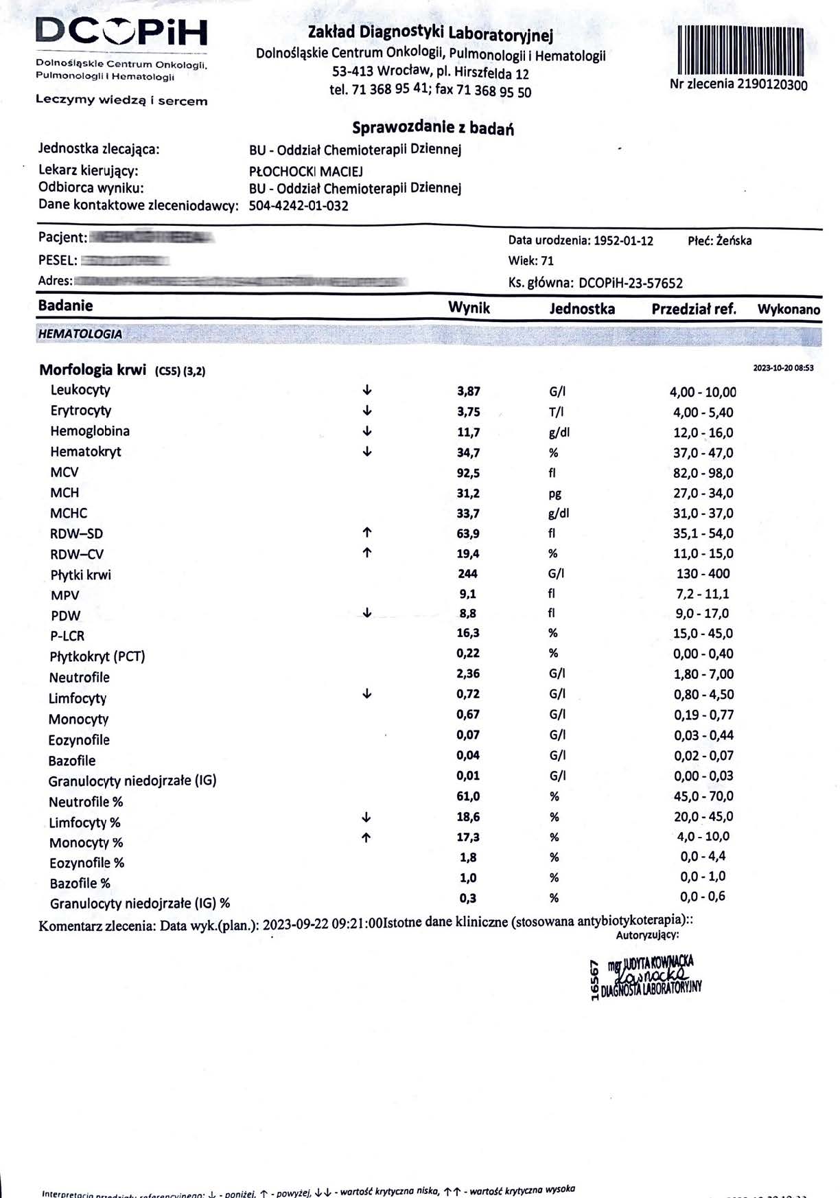 znaczącego i trwałego wzrostu – zarówno we krwi, jak i w granulocytach. Ten profil jest
