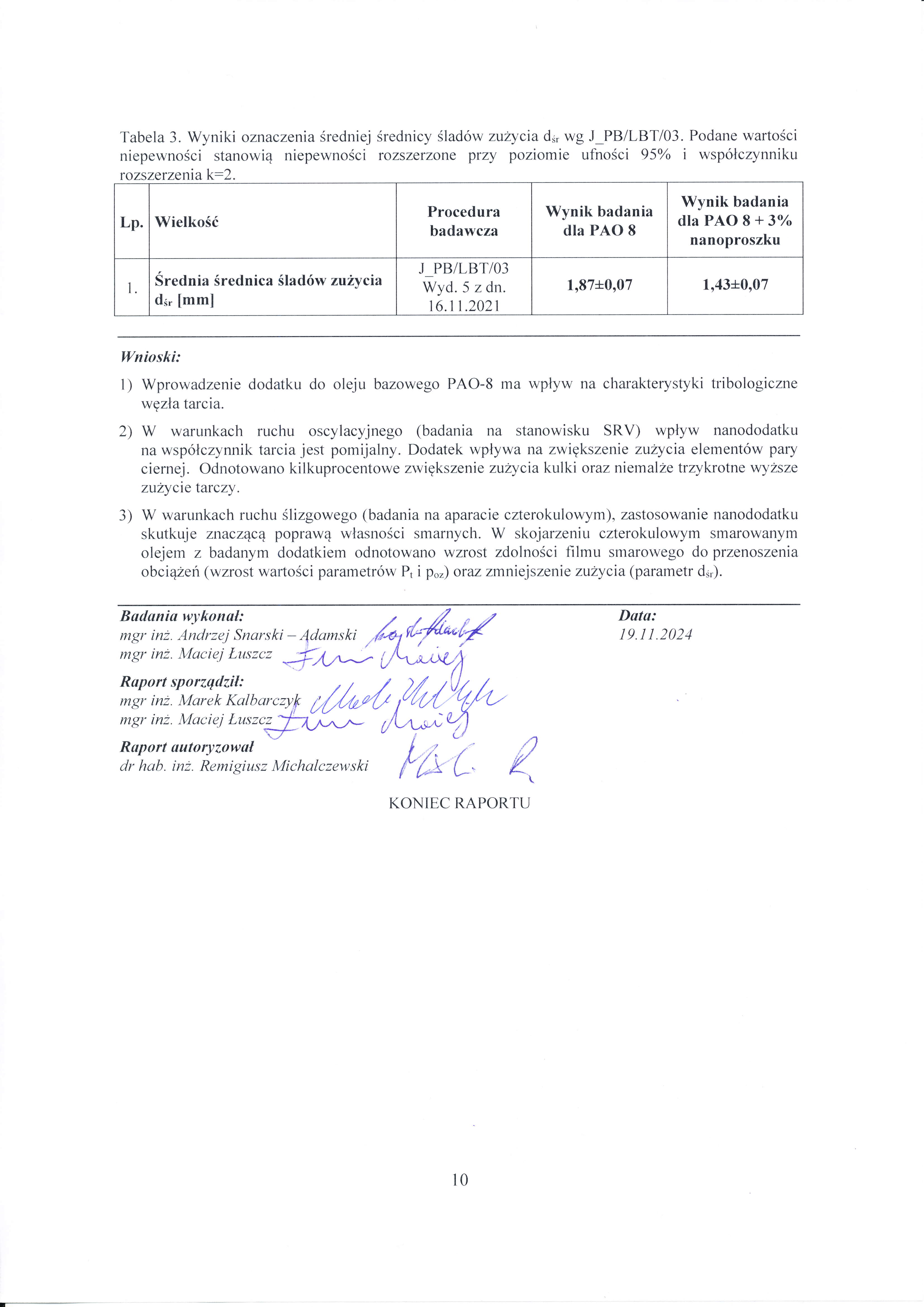 Po zdobyciu akredytacji w instytucie badawczym Łukasiewicz w zakresie tribologii, gdzie wykazano że dodatek zaledwie 3% naszych nanostruktur zwiększa zdolność oleju do przenoszenia obciążeń o około 32%, zmniejsza zużycie o około 24% i powoduje DZIESIĘCIOKROTNY wzrost ciśnienia, jakie olej może wytrzymać w warunkach ekstremalnych, teraz kierujemy nasze wysiłki na udoskonalanie morfologii naszych nanostruktur Wolframowo-Tytanowych w kolejnych dziedzinach. 💡