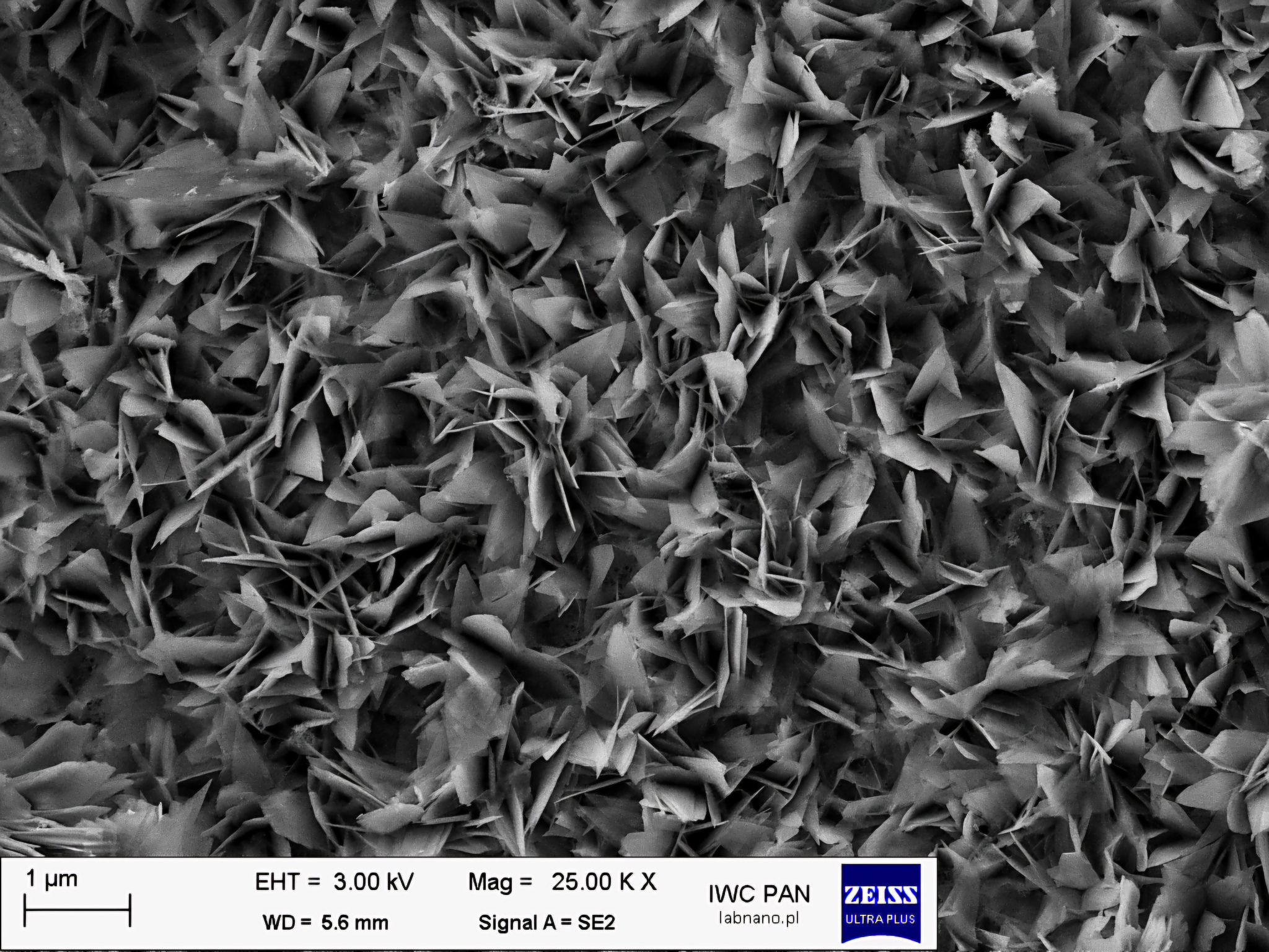 Obecnie analizujemy potencjał powierzchni właściwej naszych najnowszych nanostruktur pod kątem ich zastosowania w nowej generacji bateriach i superkondensatorach. Przeprowadzamy szczegółowe badania na Analizatorze Powierzchni Właściwej w Instytucie Wysokich Ciśnień Polskiej Akademii Nauk, wykorzystując techniki SEM do ciągłej modyfikacji morfologii, aby dokładnie udoskonalić ich strukturę i zmaksymalizować możliwości.