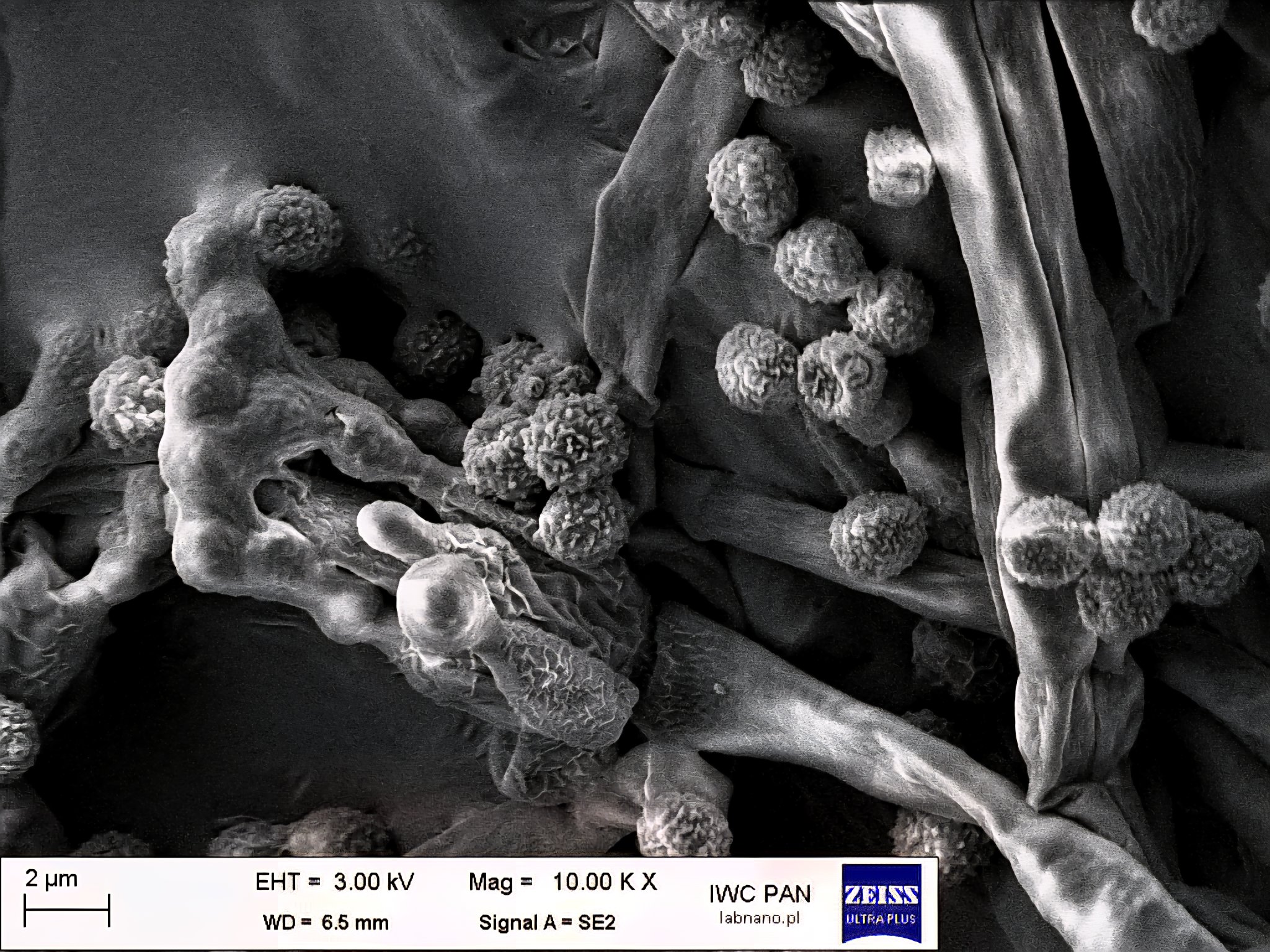 Analizy SEM/EDS pokazują wyraźną obecność fosforu i nano-struktur tytanowych w strukturze biologicznej preparowanej próbki Aspergillus– i właśnie ten element wydaje się kluczowy. Fosforanowe wiązania odgrywają ogromną rolę w procesach biologicznych, dlatego ich obecność w nanomateriałach może tłumaczyć, dlaczego powierzchnie te sprzyjają adhezji i wzrostowi mikroorganizmów. To pierwszy krok w kierunku wykorzystania ich w biomateriałach, medycynie regeneracyjnej czy nośnikach bioaktywnych.