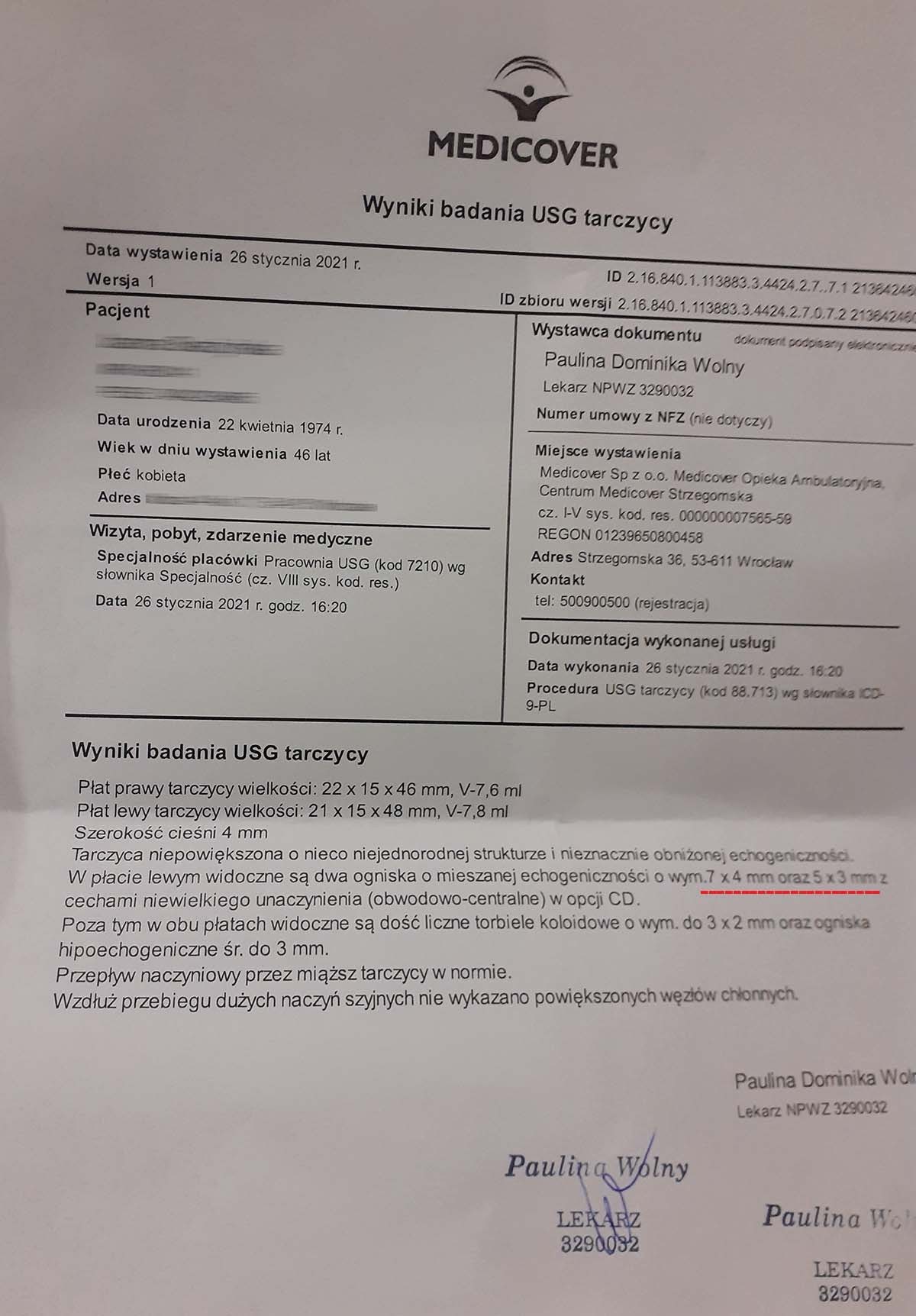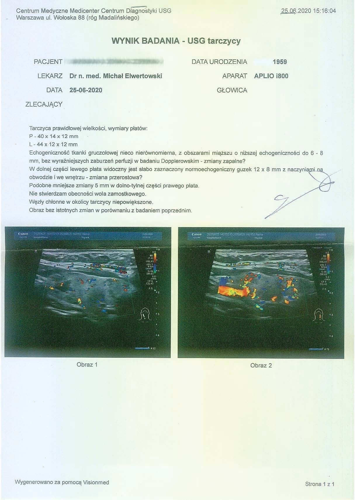 Po ponad roku kuracji badania wykazały dalszy postęp wycofania autoimmunologi tarczycy, potwierdzone również badaniem USG narządu.