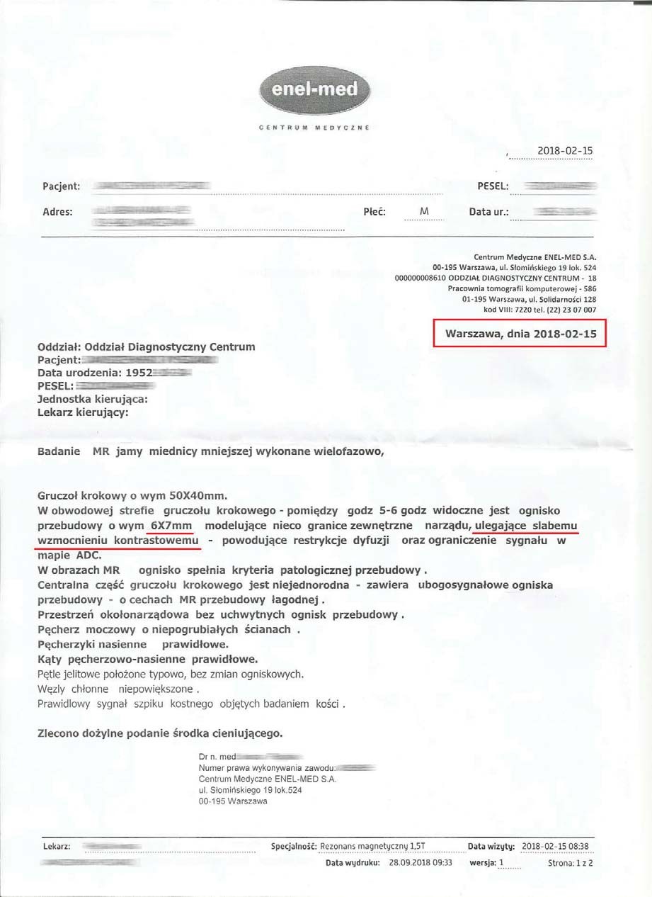Badanie po 6 miesiącach stosowania preparatu wykazało brak guza- potwierdzone badaniem obrazowym, dodatkowo prostata zmniejszona do rozmiaru optymalnego (48x61mm), charakterystycznego dla grupy wiekowej. Pełny zanik guza w tak krótkim czasie bez ingerencji chemio i radioterapii wskazuje na głęboką regenerację komórkową. Preparat stymulując mitochondria dostarcza zwiększoną ilość mitochondrialnego ATP, dzięki któremu dochodzi do apoptozy uszkodzonych komórek prostaty. Proces regeneracji komórkowej poprzez stymulację i zabezpieczenie struktury i funkcji mitochondriów wycofuje niekontrolowany podział, co wskazuje na działanie antynowotworowe bez toksyczności.